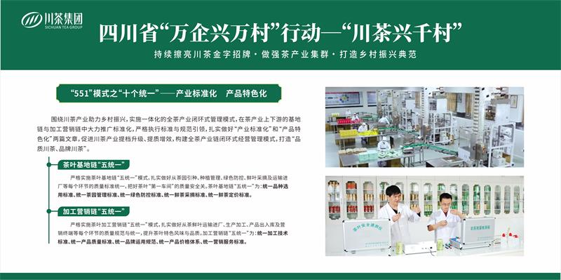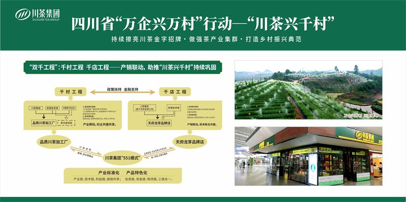 颜泽文表示,组织开展“川茶兴千村”行动是推动落实“万企兴万村” 行动的重要内容,是贯彻落实省上六部门《关于开展“万企兴万村”行动的实施意见》文件精神的具体举措,在探索川茶产业助力巩固拓展脱贫攻坚同乡村振兴有效衔接中主动担当作为,川茶集团率先行动,积极响应党委政府号召,提出“五大共享”“五大创新”“十个统一”的“551”发展模式,积极践行“川茶兴千村”行动落地落实。川茶集团将按照“551”发展模式,推进川茶产业标准化、川茶产品特色化,牵头实施千村千店“双千工程”,依托乡村特色产业优势资源,方便更多企业参与其中,通过产业帮扶、村企共建共兴,通过产销联动、资本联合共赢,让“万企兴万村”行动更好落地生根,共同助推“川茶产业振兴、百姓共同富裕”取得实效。