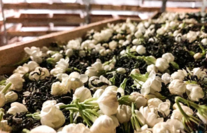 邂逅了茶的清冽 将花拌入茶中,轻轻堆放 静置待花吐香,茶吸香 这是茉莉花与茶的第一次亲密接触 与其说是